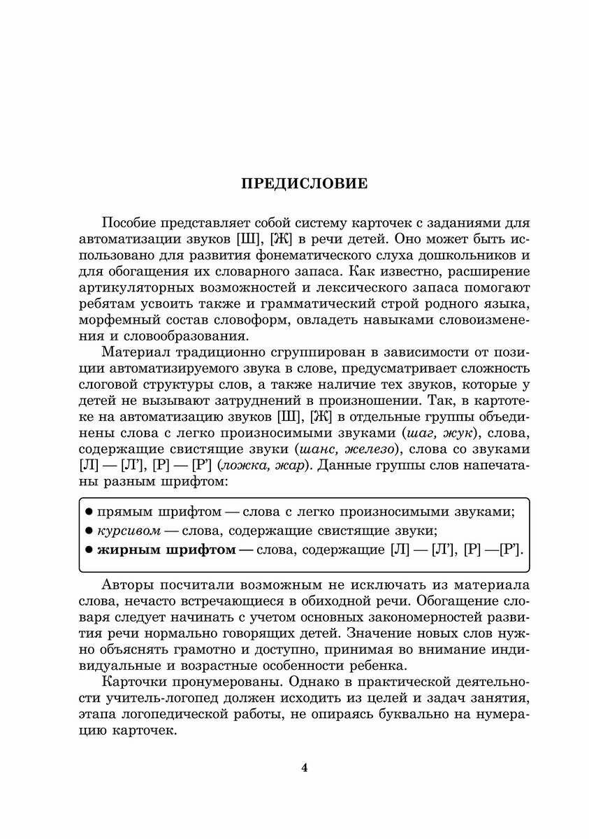 Перед вами не просто логопедическое пособие, а целая система карточек. На карточках — разнообразные задания для автоматизации звуков [ш], [ж] в речи. Карточки удобно использовать и во время логопедических занятий, и для закрепления правильного звукопроизношения дома после занятий, на каникулах, в поездках. Инструкцию по работе с карточками вы найдете в предисловии.