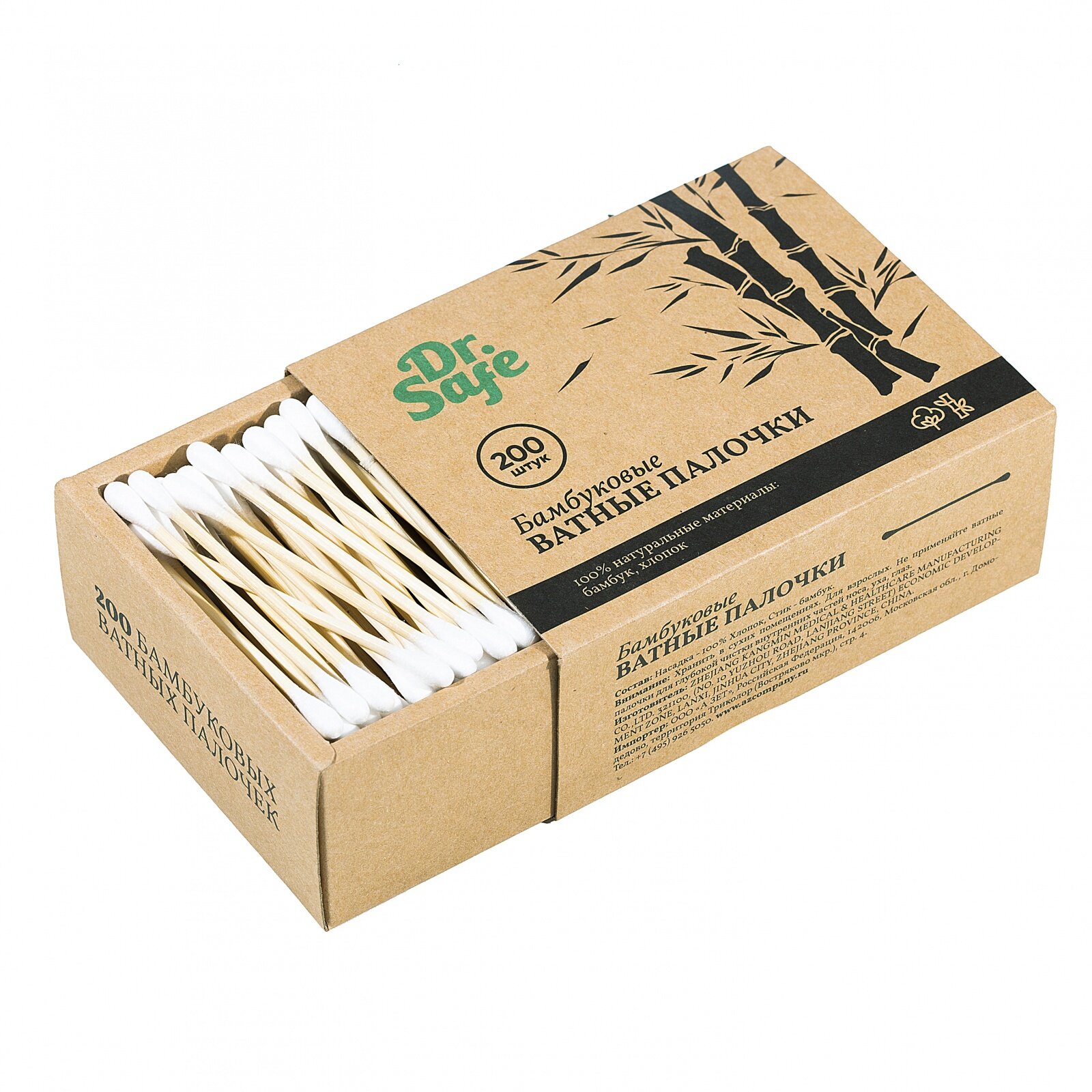 Палочки ватные бамбуковые Dr.Safe/Доктор Сейф 200шт ZHEJIANG KANGMIN MEDICAL & HEALTHCARE MANUFACTURING CO., LTD. (2127122)