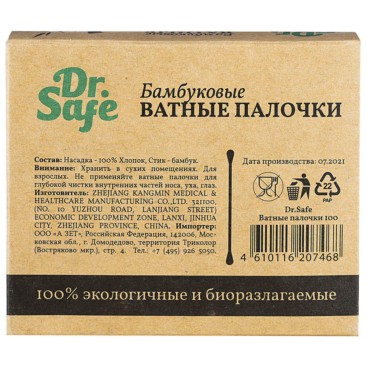 Палочки ватные бамбуковые Dr.Safe/Доктор Сейф 100шт ZHEJIANG KANGMIN MEDICAL & HEALTHCARE MANUFACTURING CO., LTD. (2127122)