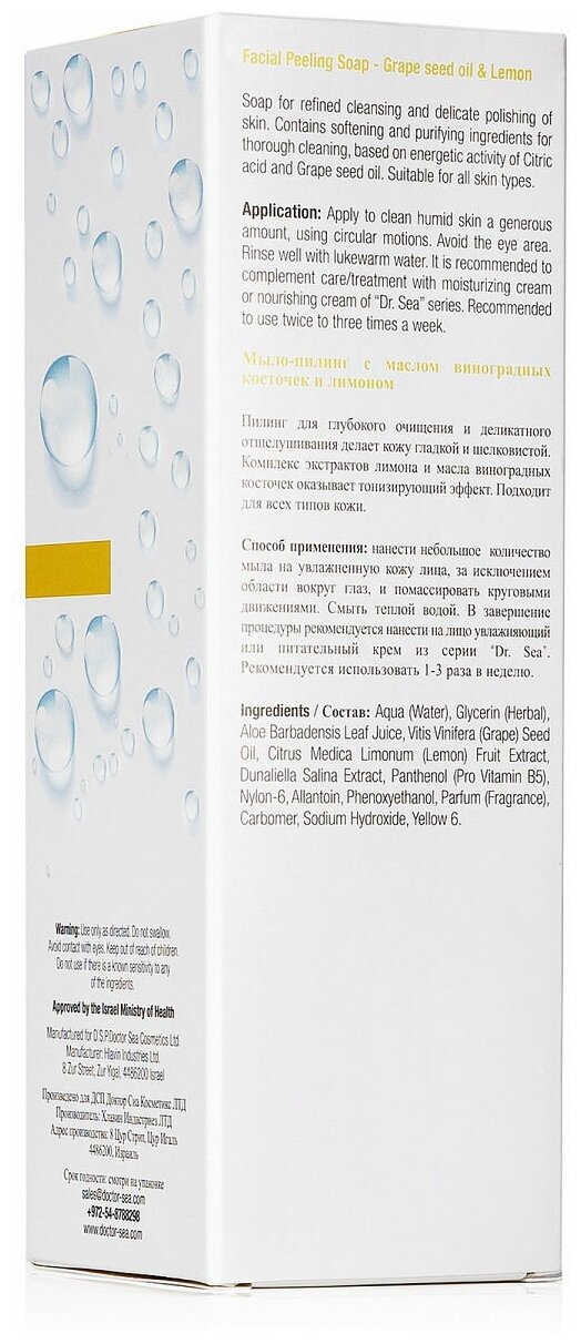 Мыло-пилинг для лица с маслом виноградных косточек и экстрактом лимона Dr.Sea/ДокторСи 200мл Pharma Naturalis LTD IL (2134802)