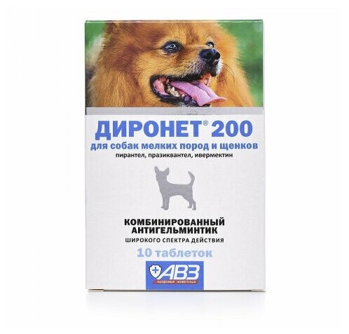 Таблетки для собак и щенков АВЗ Диронет 200 Антигельминтик для мелких пород 2 таб