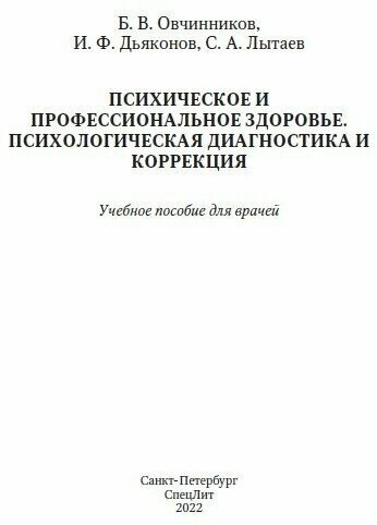 Психическое и профессиональное здоровье. Психологическая диагностика и коррекция (Дьяконов Игорь Федорович (соавтор), Овчинников Борис Владимирович, Лытаев Сергей Александрович (соавтор)); СпецЛит, 2022