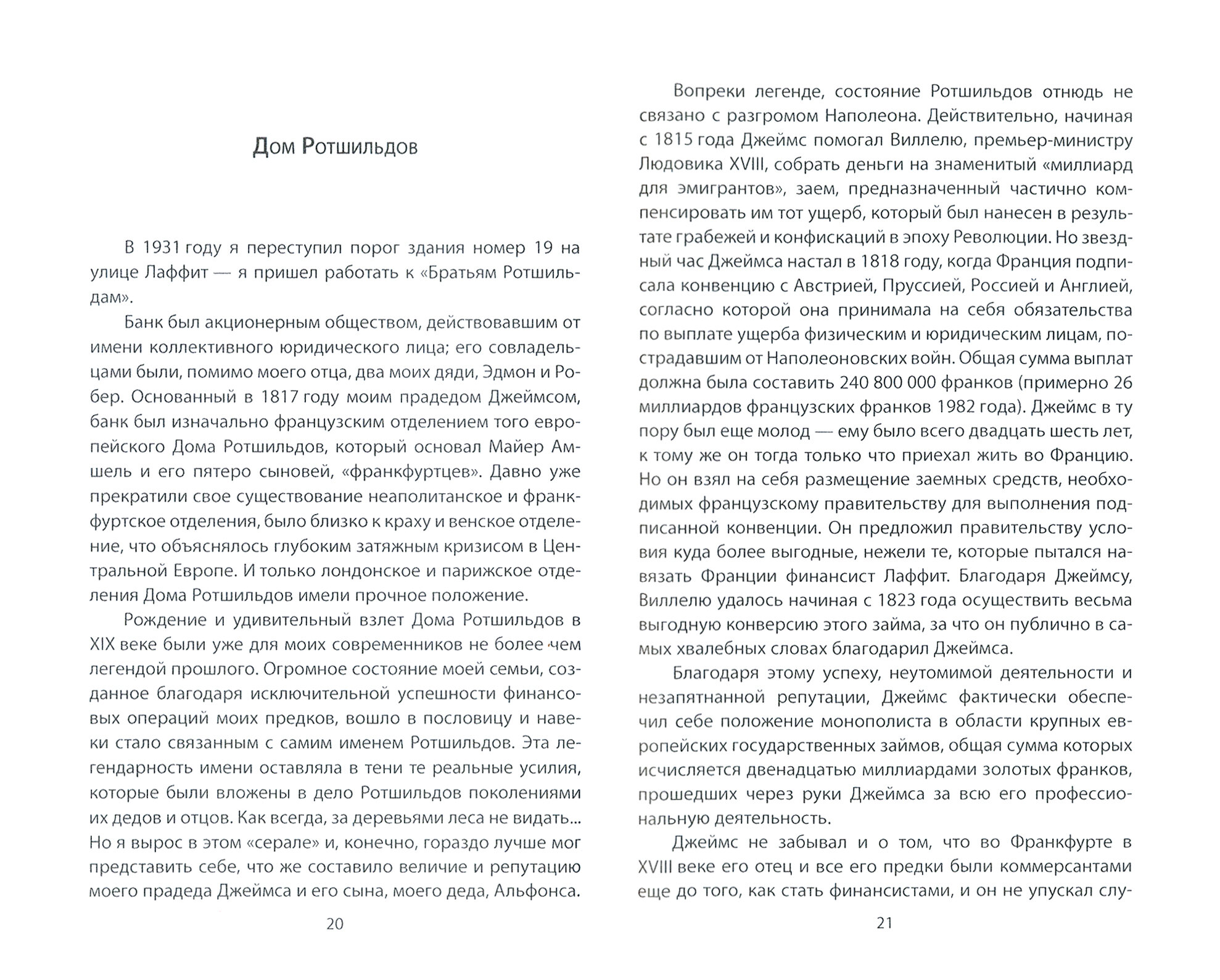 Автор этой книги барон Ги де Ротшильд – банкир, член финансовой династии Ротшильдов. Он был председателем совета директоров банка de Rothschild Freres, владел имуществом в других французских и иностранных компаниях. Многие считают, что Ротшильды и сегодня правят миром, оставаясь одной из самых могущественных финансовых групп (ее общее состояние оценивается в 1,7 триллиона долларов). Так ли это, на чем основывается богатство Ротшильдов, как они ведут дела, какова их роль в международной политике, как строится личная жизнь? Ги де Ротшильд раскрывает всю историю своего дома.