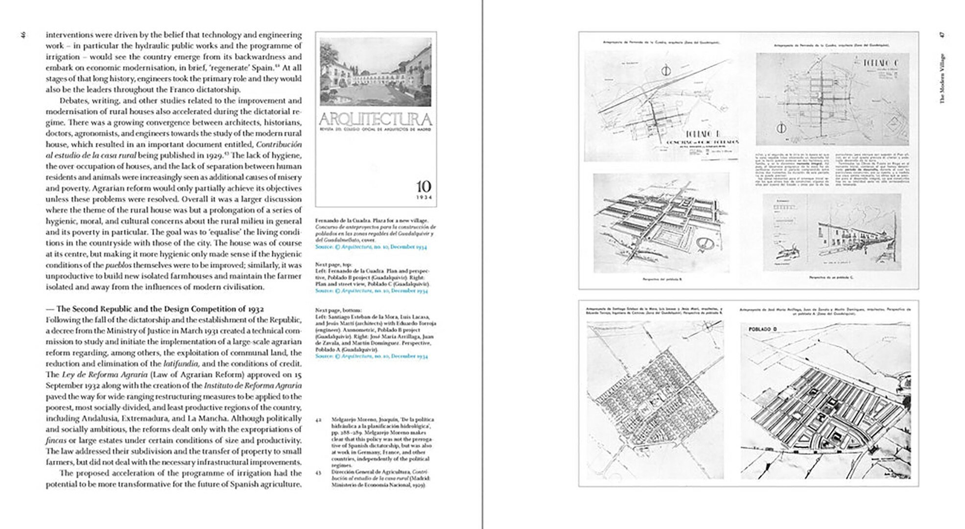 The consequent strategy of interior colonisation entailed the construction of 300 new villages or pueblos, each designed as a ‘rural utopia’ centred on a plaza mayor, which embodied, between tradition and modernity, the political ideal of civil life under the national-catholic regime. In the 1950s?–?1960s, a new generation of architects, including Jose Luis Fernandez del Amo, Alejandro de la Sota, and Antonio Fernandez Alba, reimagined the pueblos as platforms of urban and architectonic experimentation in their search for an abstracted rural vernacular and an organic urban form merging with the landscape.