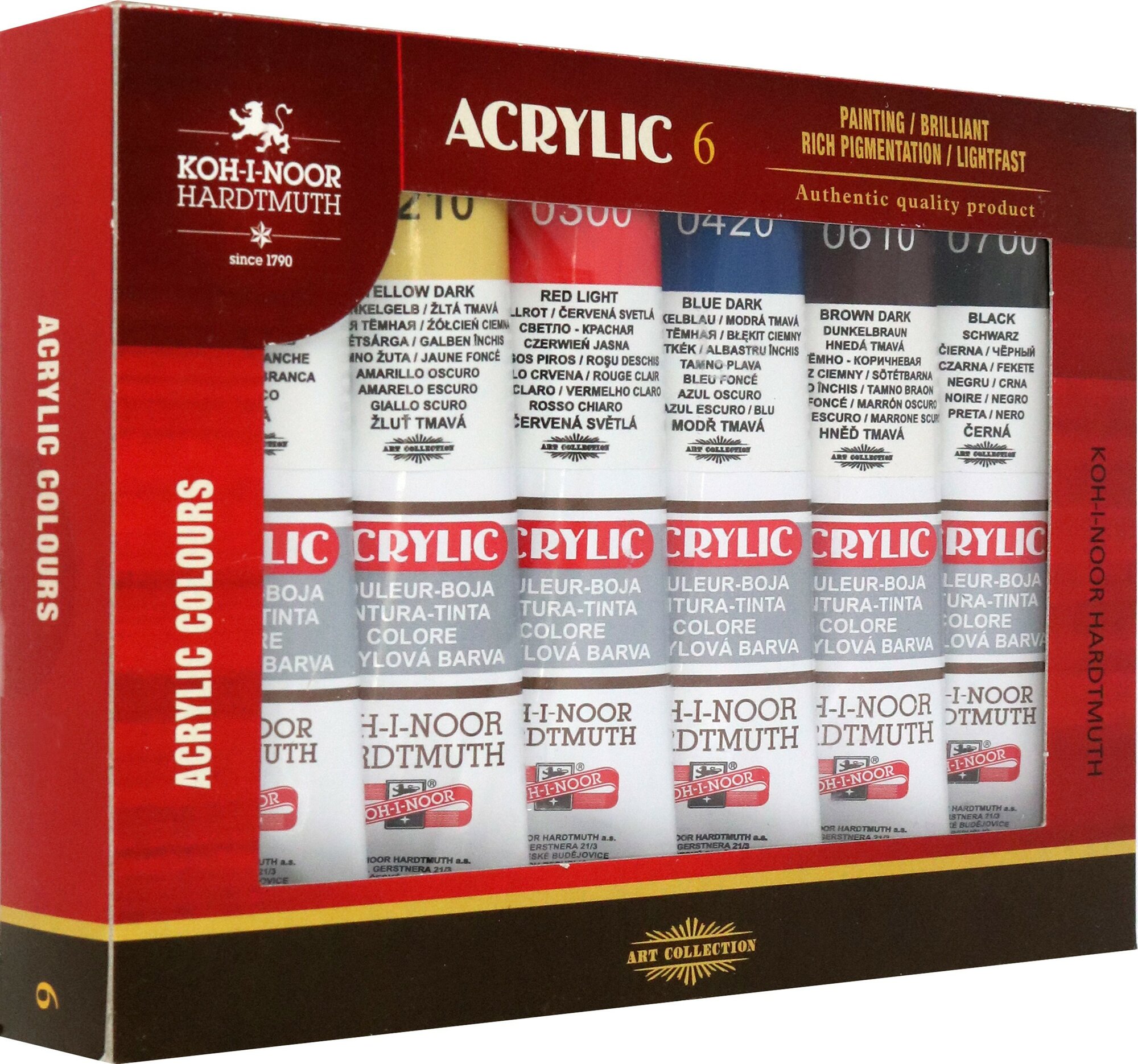 Краски акриловые художественные в тюбиках 6 цветов KOH-I-NOOR
