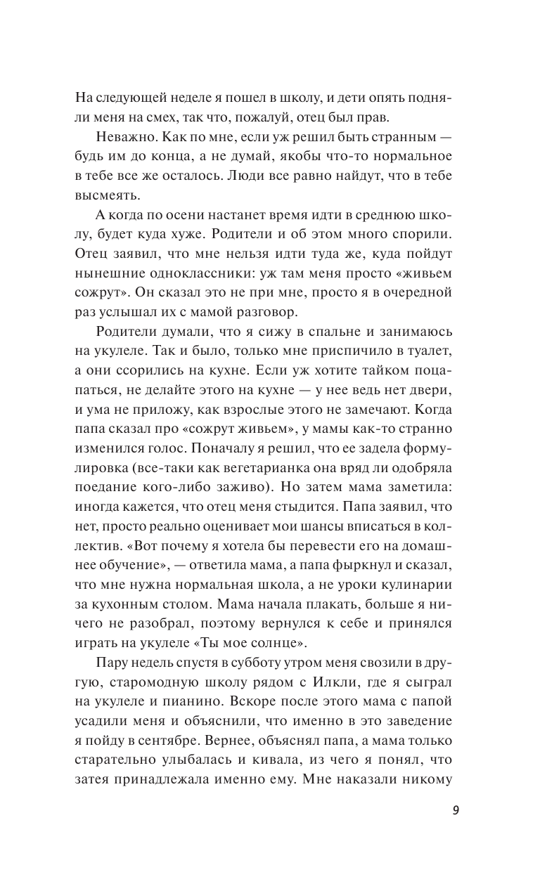 Но в есть и то, что вызвало мое несогласие. Если сначала я соглашалась с мамой мальчика, то к середине книги я была согласна с его отцом. Его слова были гораздо разумнее. Но как мне показалось, что до конца книги автор показывал, что именно взгляд матери правильнее. Я с этим была не согласна, но это только мое мнение. -