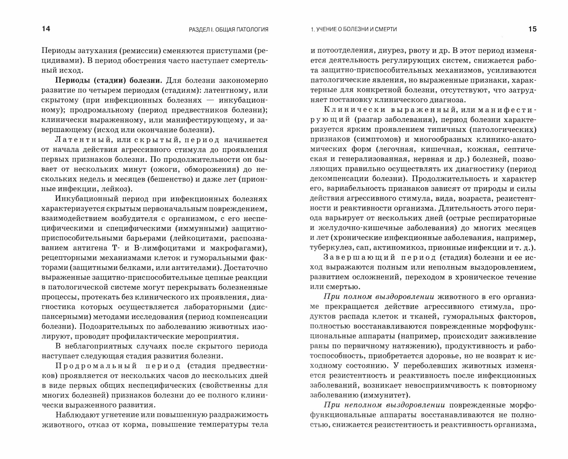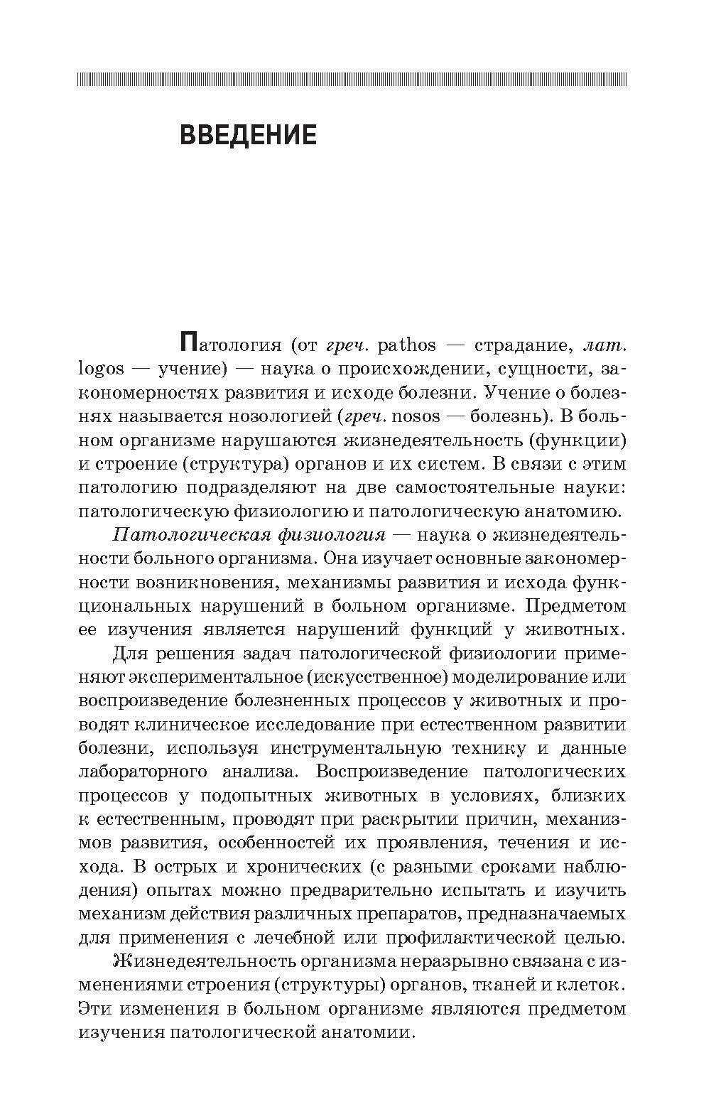 Раскрыты сущность болезни, ее этиология и патогенез, закономерности возникновения, развития и исходов патологических, функциональных и структурных изменений в больном организме. Рассмотрены атрофии, дистрофии, апоптоз и некроз, расстройства крово- и лимфообращения, воспалительные и компенсаторные процессы, генетическая патология, опухоли и лейкозы. Приведены изменения в органах и системах, характерные для незаразных, инфекционных, паразитарных и микотических болезней. Даны рекомендации по методике проведения лабораторно-практических занятий.