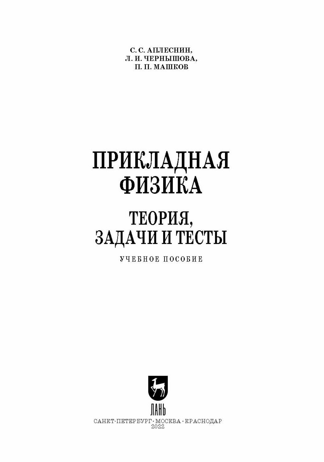 Прикладная физика. Теория задачи и тесты. Учебное пособие для СПО (Машков Павел Павлович,Аплеснин Сергей Степанович,Чернышова Л.И.); Лань, 2022