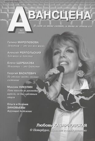 Журнал Авансцена" - новый журнал об известных людях Санкт-Петербурга, о тех, кто стремится сделать этот мир лучше. Открывает читателям новых героев и вспоминает тех, кто ушел. Журнал "Авансцена" - это интервью, обзоры культурных событий в Санкт-Петербурге, аналитика. Издание предназначено широкому кругу читателей, тем, кто интересуется культурной жизнью города. Издается с 2020 года четыре раза в год."