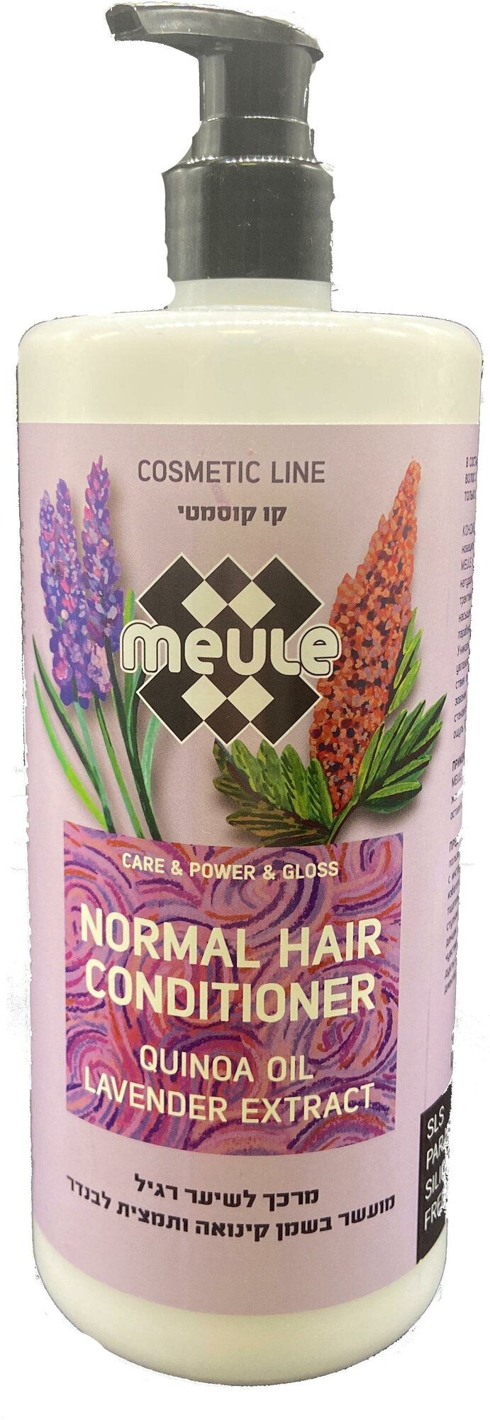 Кондиционер для нормальных волос из инновационной серии средств по уходу за волосами "MEULE” содержит мощный комплекс, обогащенный натуральным маслом киноа и ароматными экстрактами французской лаванды и розмарина для насыщенного питания ваших волос. Без сульфатов, парабенов, силикона и искусственных красителей. Уникальная инновационная формула обеспечивает увлажнение, питание и защиту волос от воздействия окружающей среды. После использования кондиционераВаши волосы будут мягкие, блестящие и приятные на ощупь.Подходит для повседневного использования.Применение: после использования шампуня MEULE Normal hair легкими массирующими движениями равномерно нанести на влажные волосы, оставить на 2 минуты, затем тщательно смыть водой.