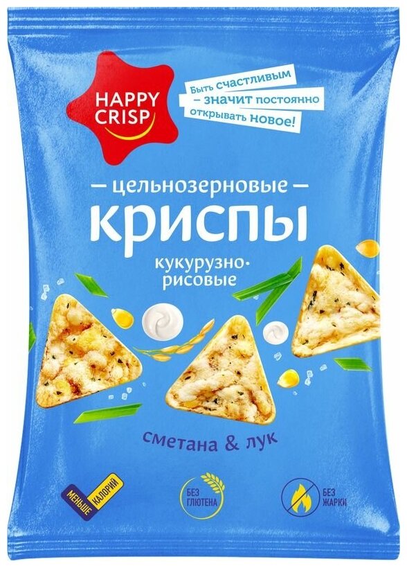Чипсы Happy Crisp Сметана лук 50г Криспы кукурузно-рисовые Happy Crisp Сметана и Лук 50 г1х15