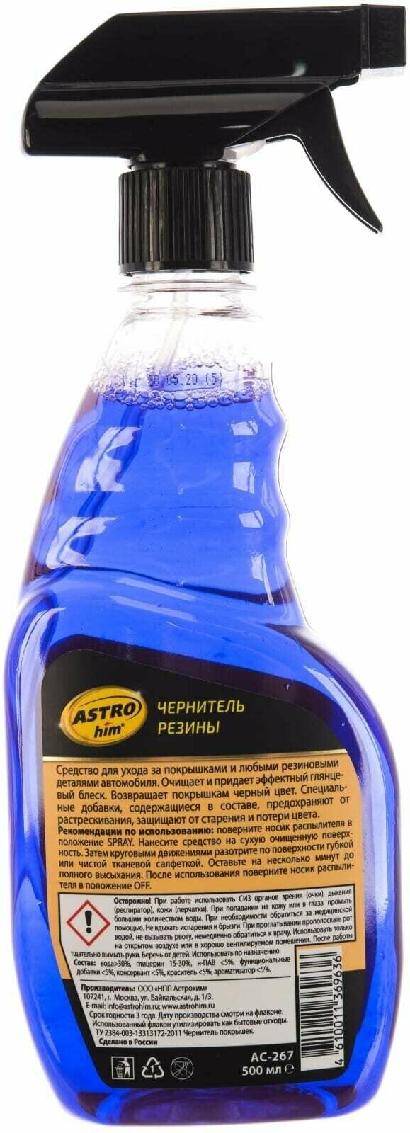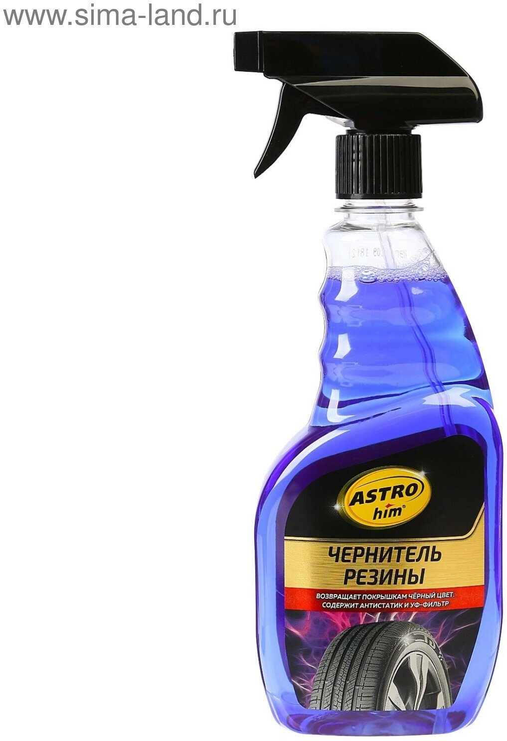 Чернитель резины ASTROhim – современный состав, специально разработанный для ухода за покрышками и любыми другими деталями автомобиля.