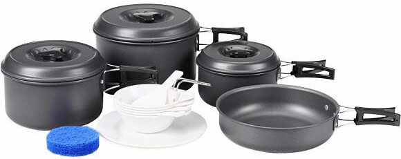 | Комплектация | миска, ложка, кастрюля (3 шт.), сковорода, половник, губка для мытья посуды |