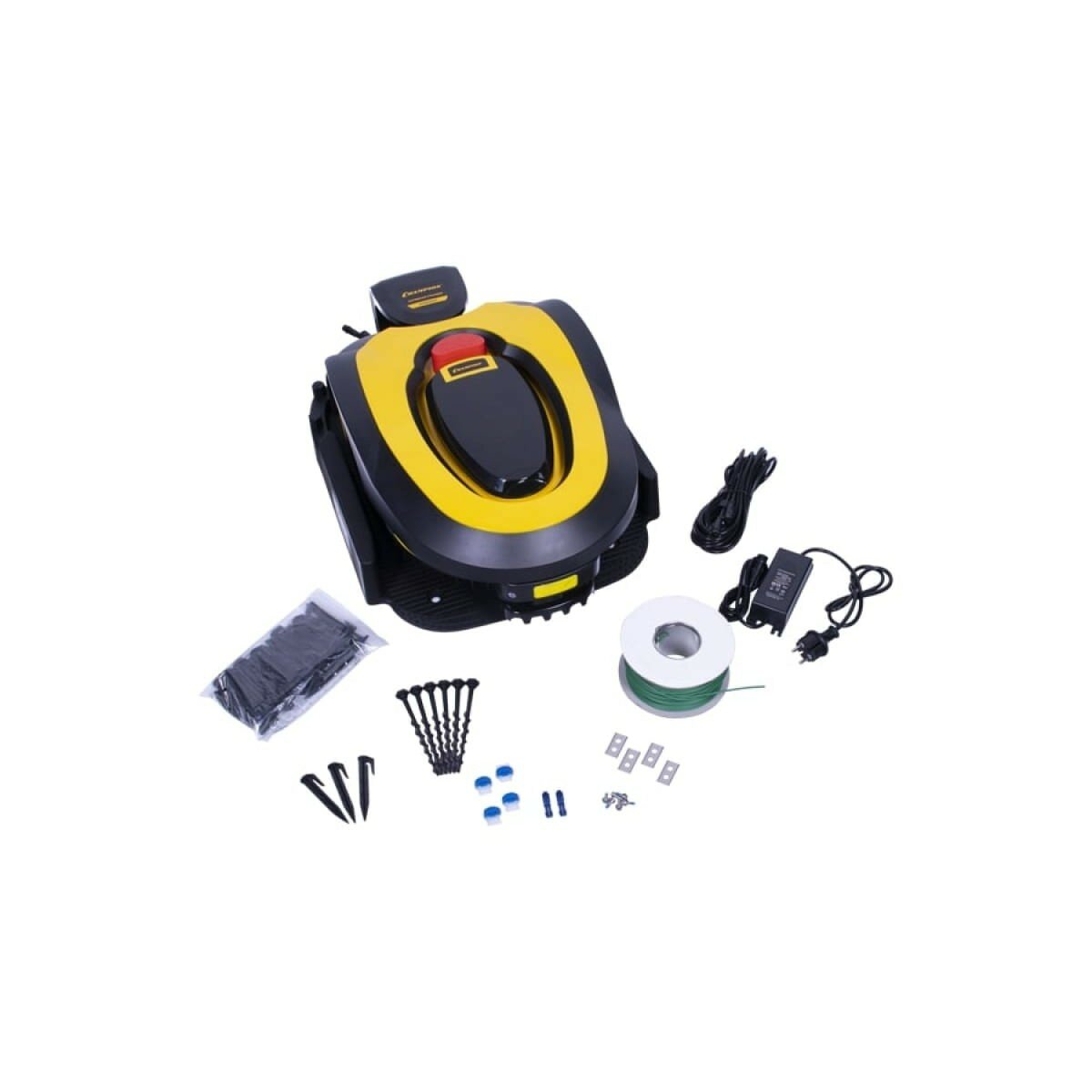 | Комплектация | блок питания; документация; зарядная станция; колышки 150 шт; нож запасной с крепежом; ограничительный провод 150 м; соединители проводов 4 шт; удлинитель 7 м |