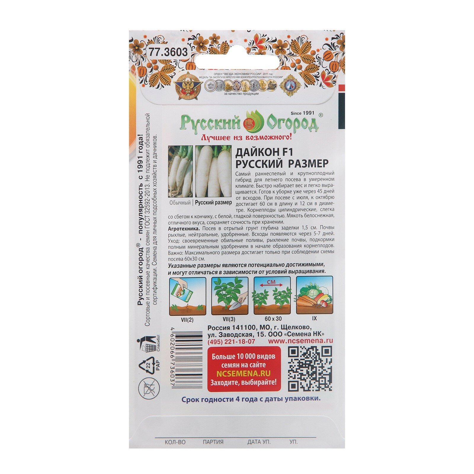 Откройте для себя невероятный потенциал выращивания с семенами Дайкон, Русский размер F1 от бренда Русский огород. Эти семена позволят вам насладиться раннеспелыми овощами, которые порадуют своим качеством и вкусом.