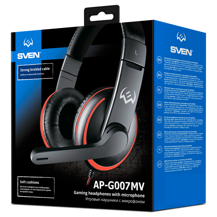 Проводная гарнитура SVEN AP-G007MV позволяет почувствовать все звуковые особенности игры – от громких взрывов до крадущихся шагов. Модель обеспечивает высокое качество звучания в диапазоне 20-20000 Гц. Наушники оснащены удобным откидным микрофоном. Чувствительность -38 дБ позволяет общаться с друзьями по команде без посторонних шумов. Проводная гарнитура SVEN AP-G007MV подключается с помощью кабеля с разъемами jack 3.5 мм. Модель имеет небольшой вес, мягкое оголовье и амбушюры, что создает дополнительный комфорт во время игры. Кабель длиной 2 м в тканевой оплетке устойчив к заломам и другим повреждениям. На проводе есть пульт управления, который всегда под рукой для регулировки громкости и других настроек.