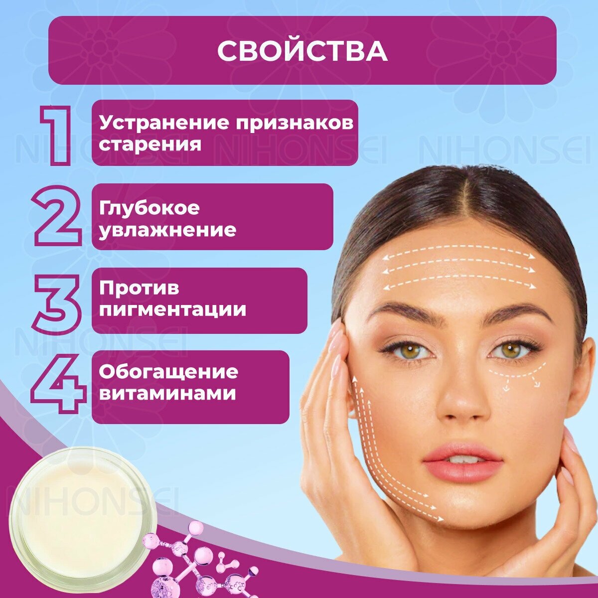 | Активный ингредиент | гиалуроновая кислота, плацента, экстракт зеленого чая |