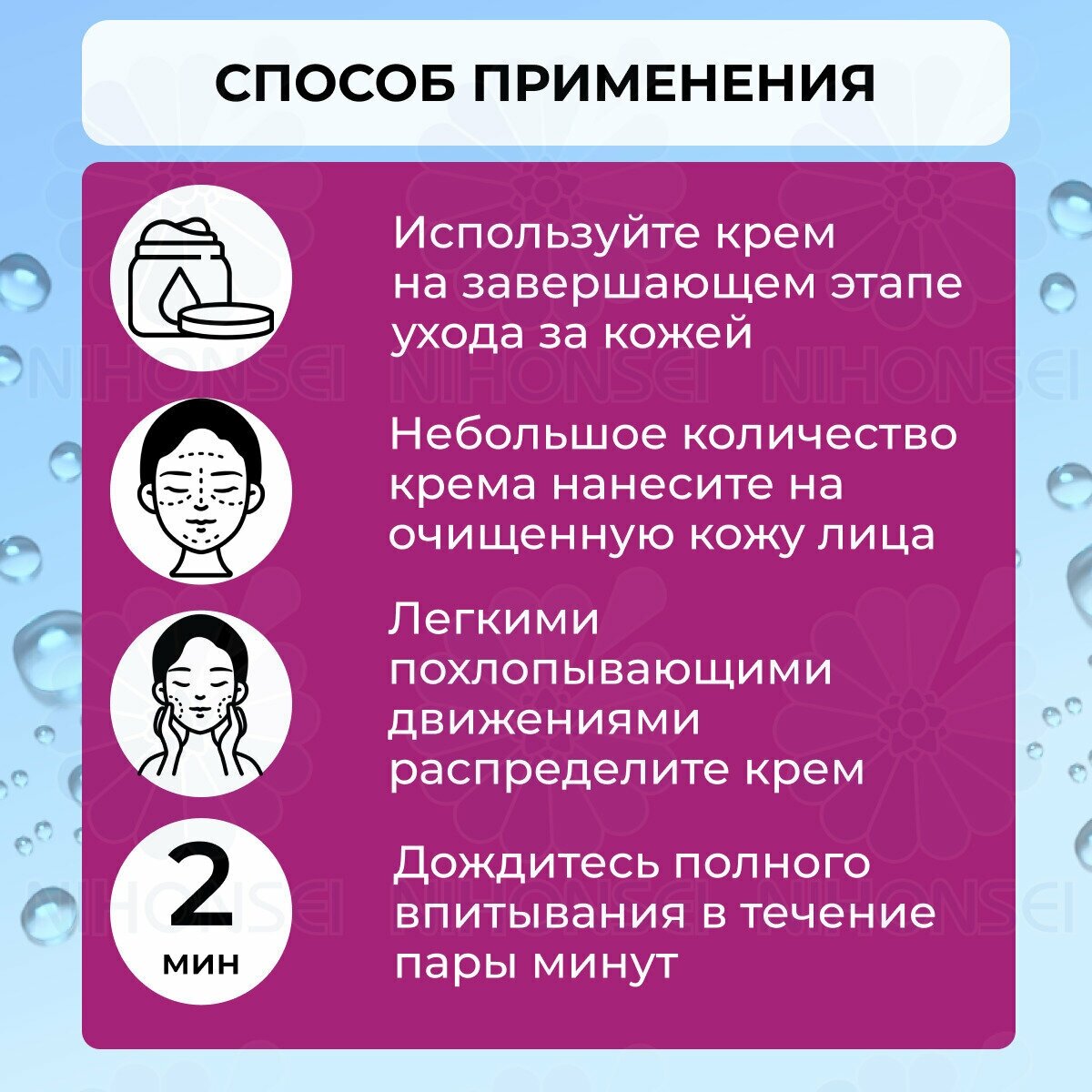 | Применение | наносите ежедневно утром и вечером после очищения на кожу лица |