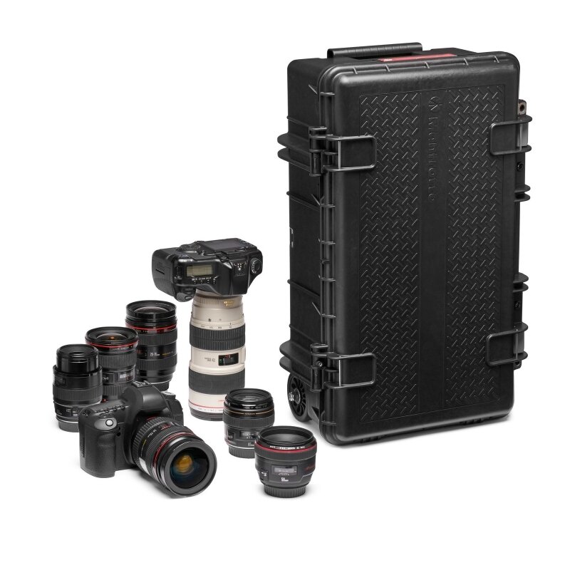 Кофр на колесах Pro Light Reloader Tough L-55 для DSLR-камер и премиум CSC-камер предназначен для профессиональных путешествующих фотографов и видеооператоров. Этот кофр изготовлен в оригинальном дизайне Manfrotto в Италии из сверхпрочных легких материалов, основанных на военном стандарте. Разработанный для путешественников, которые не хотят икать компромисс между безопасностью и портативностью, этот кофр соответствует международным стандартам размеров ручной клади (Всегда проверяйте текущие требования к ручной клади вашей авиакомпании перед полетом. Имейте в виду, что перегрузка сумки приведет к ее расширению) и оснащен 2-ступенчатой выдвижной ручкой для транспортировки. Новый Pro Light Reloader Tough L-55 имеет внутренний съемный кофр для организации пространства, который можно настроить с помощью регулируемых разделителей Manfrotto CPS (Camera Protective System). В кофр помещается профессиональная DSLR-камера с установленным объективом 70-200 мм f2.8, второй камерой и 4-5 дополнительными объективами. IP67 тесты подтверждены: пыль не проникает внутрь, временное погружение в воду на 30 минут.
