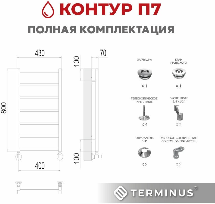 Полотенцесушитель водяной Terminus Контур П7 400*800 4670078529640