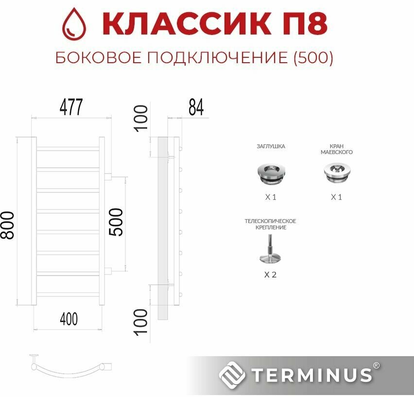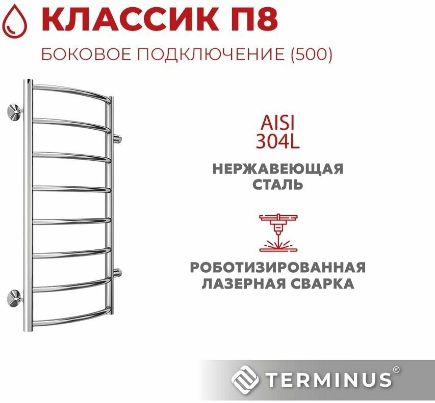 Полотенцесушитель водяной Terminus Econom Классик П8 400x800 с боковым подключением 500 4670078530233
