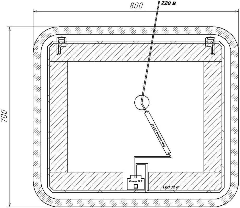 | Оснащение зеркала | С выключателем, с подсветкой |
