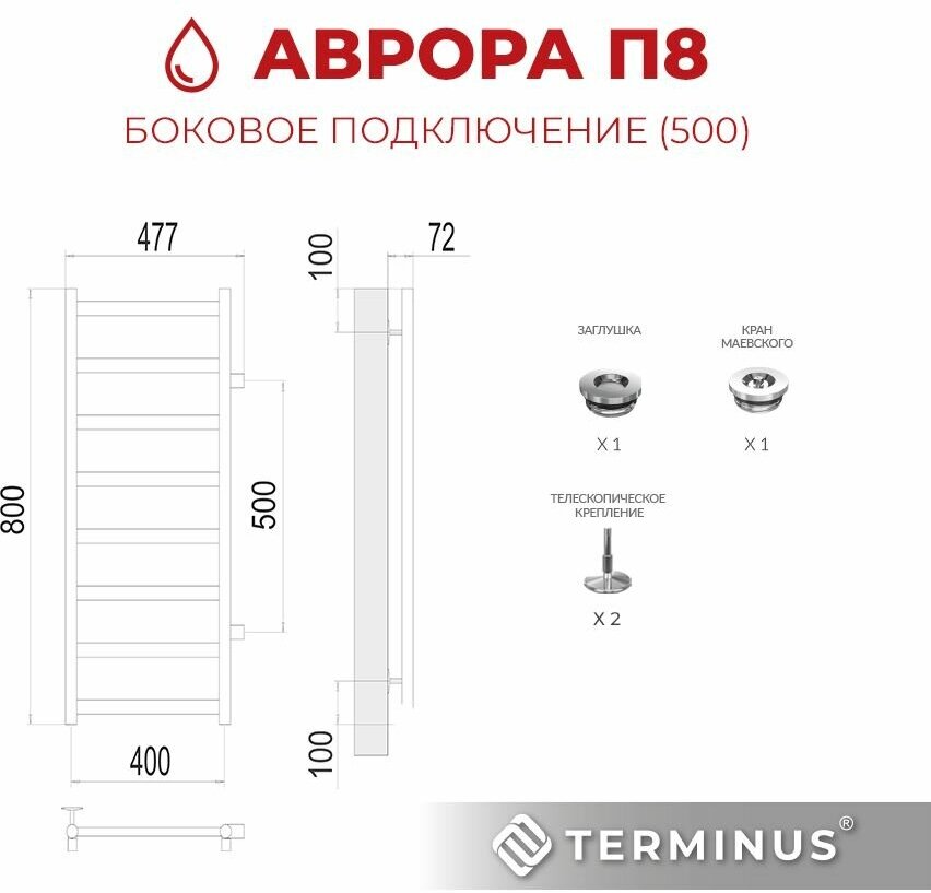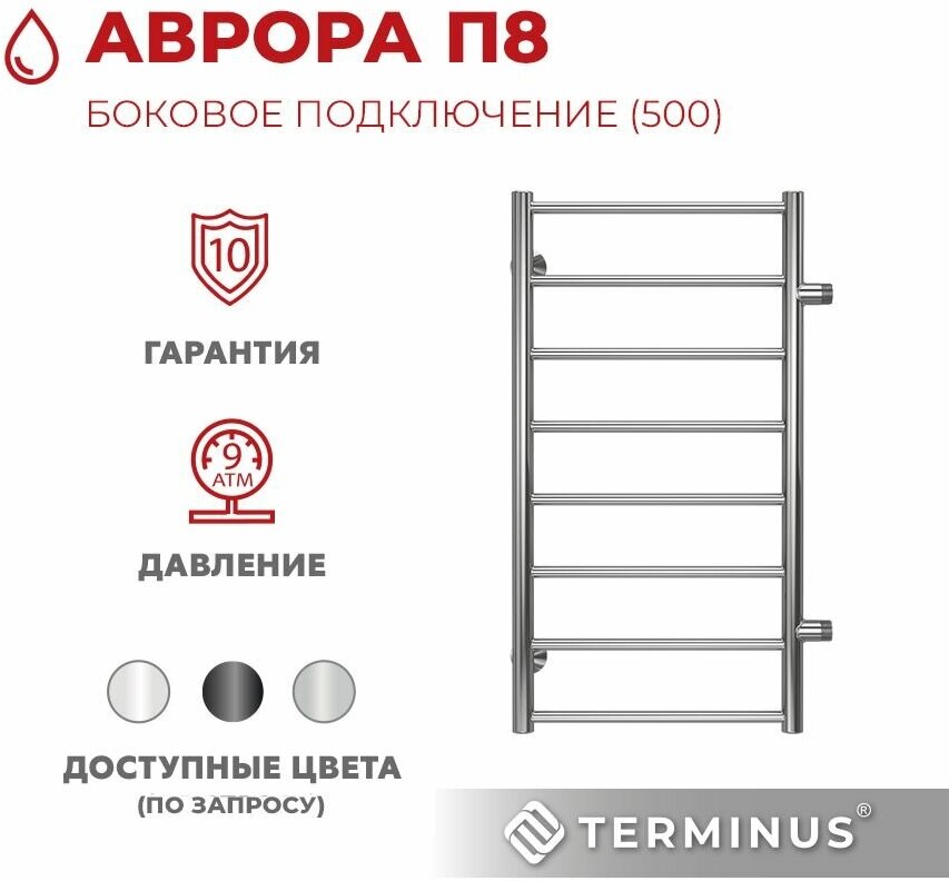 Полотенцесушитель водяной Terminus Econom Аврора П8 400x800 с боковым подключением 500 4670078529909