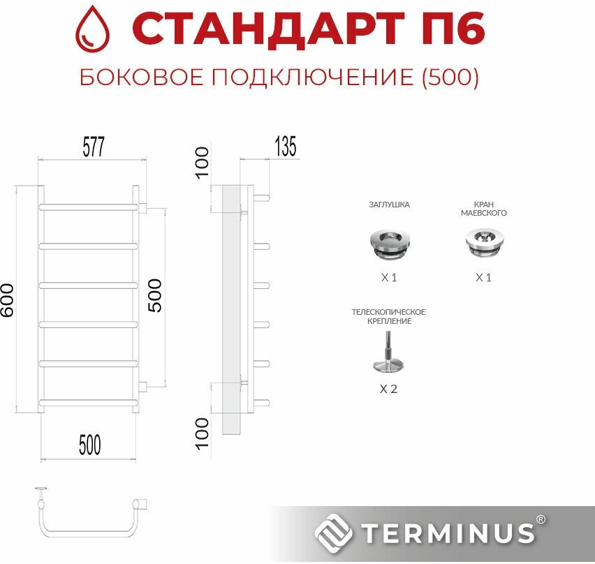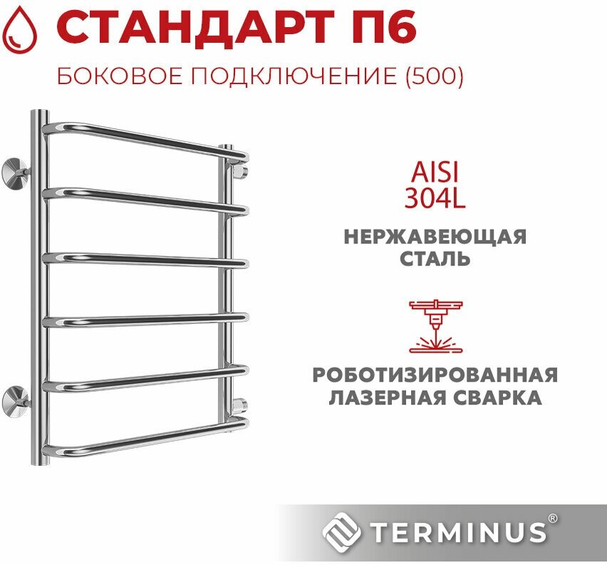 Полотенцесушитель водяной Terminus Econom Стандарт П6 500x600 с боковым подключением 500 4670078530349