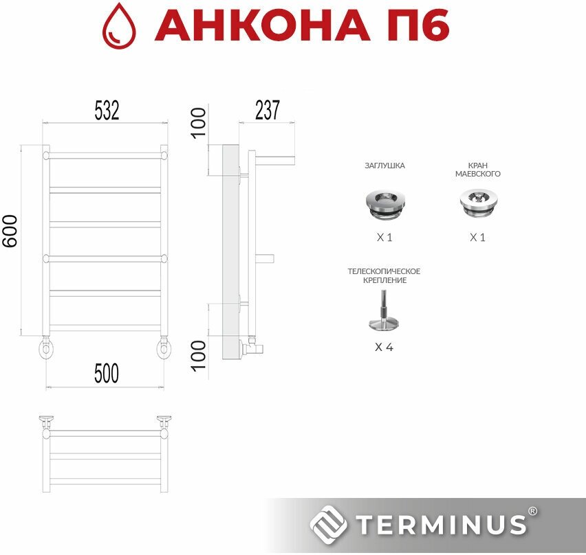 Полотенцесушитель водяной Terminus Econom Анкона П6 500x600 с полкой 4670078529954
