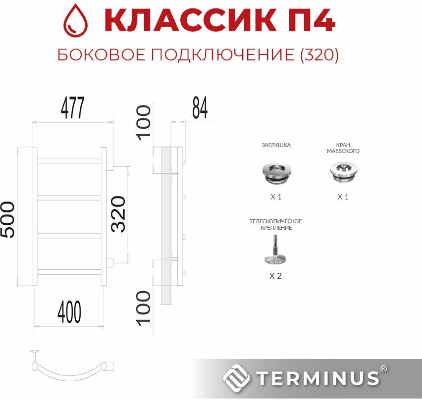Полотенцесушитель водяной Terminus Econom Классик П4 400x500 с боковым подключением 320 4670078530189