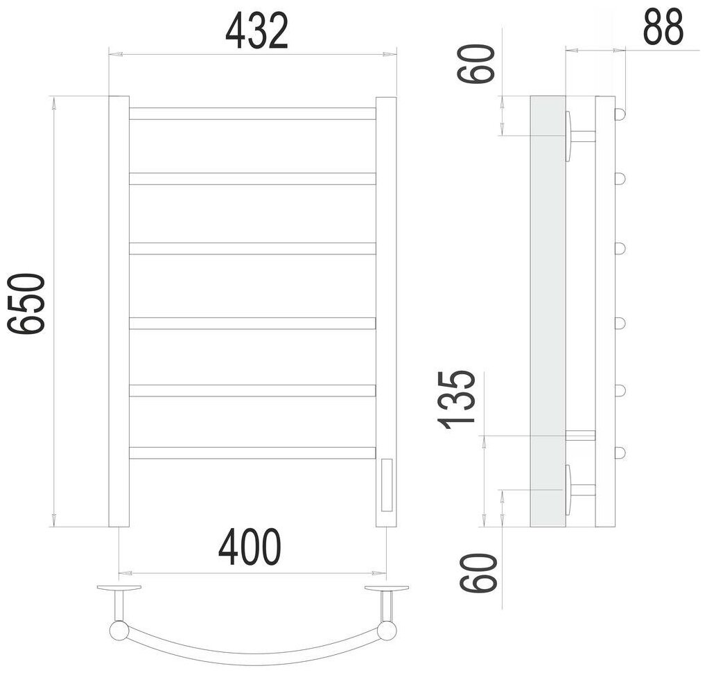Полотенцесушитель электрический Terminus Классик П6 400x650 4670078531308 (размер: 65x40 см)