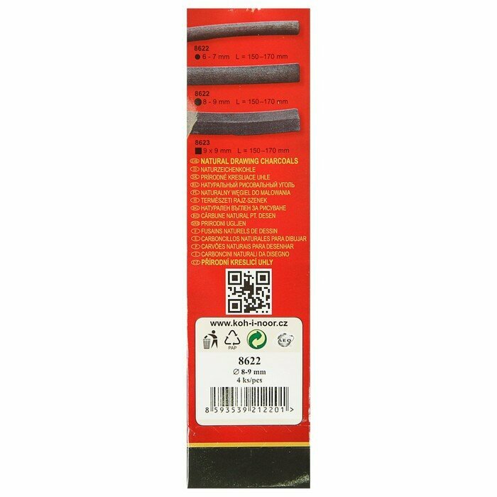 Уголь художественный натуральный 8622 полочки 8-9 4 штуки KOH-I-NOOR