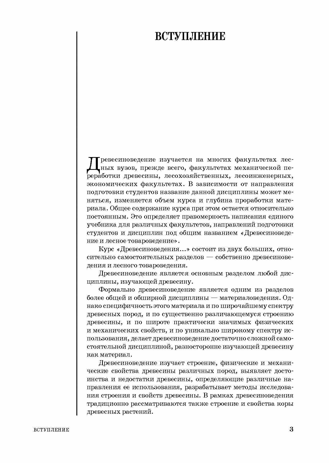 В учебнике детально рассмотрены все основные разделы курса «Древесиноведение и лесное товароведение» и курса «Лесное товароведение и древесиноведение». Строение древесины рассмотрено на различных уровнях организации: элементный и химический состав древесины, надмолекулярное и субмикроскопическое строение, клеточное строение, макроскопическое строение, строение на уровне дерева. Детально рассмотрены основные физические и механические свойства древесины, их зависимость от различных факторов, изменчивость как в целом для древесины, так и в пределах одной породы. Кратко рассмотрены особенности строения и свойств древесины наших основных древесных пород, основные пороки древесины. В разделе «Лесное товароведение» рассмотрено понятие лесных товаров и приведена краткая характеристика основных видов продукции на основе современных нормативных документов. Учебник предназначен для студентов, бакалавров, магистров и аспирантов высших учебных заведений лесного профиля, обучающихся по курсам «Древесиноведение и лесное товароведение» и «Лесное товароведение и древесиноведение». Учебник содержит большое количество иллюстративных материалов.