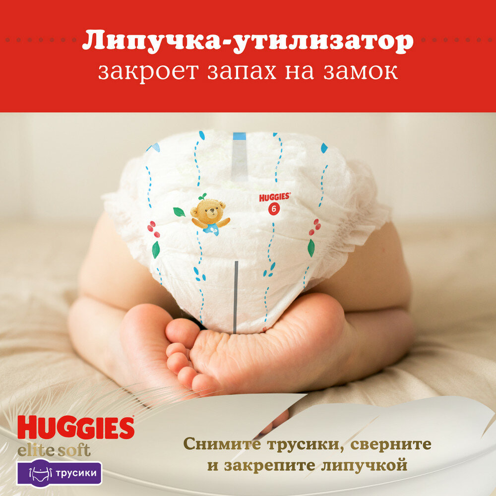 Дышащие трусики более 10 000 микропор. Для нежной заботы о коже. Подходят для мальчиков и девочек. Каналы впитывают влагу и помогают запереть ее внутри. Мягкий эластичный поясок адаптируется к размеру животика малыша. Легко надеть просто натяните трусики. Легко снять разорвите боковой шов. Индикатор влаги подскажет, когда придет время сменить трусики. Трусики-подгузники Huggies содержат материалы с видимыми воздухопроницаемыми микропорами в виде отверстий. Легко надеваются, легко снимаются.