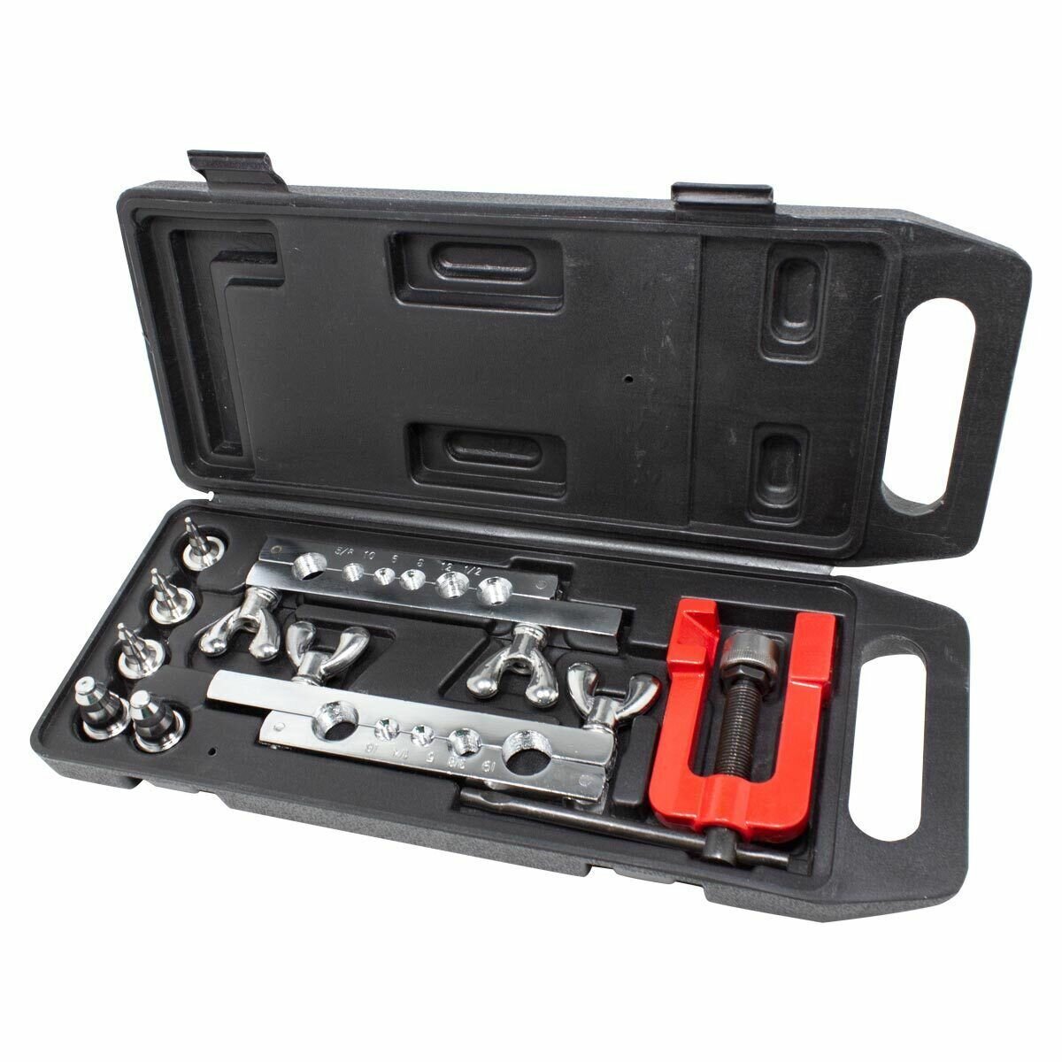 Набор инструментов : для развальцовки трубок 8пр. в кейсе ROCKFORCEНабор инструментов предназначен для работы с тормозной системой, системой питания и кондиционирования. Он включает в себя планки с отверстиями под трубки 1/8, 3/16, 1/4, 5/16, 3/8, 7/16, 1/2, 3/4 и 5/8.Инструменты изготовлены из качественной стали, что обеспечивает высокую прочность и долговечность. Материал устойчив к коррозии и износу, что гарантирует долгий срок службы.Набор поставляется в удобном пластиковом кейсе, который обеспечивает безопасное хранение и транспортировку инструментов. Кейс также позволяет удобно переносить инструменты с собой на место работы.Выбирая набор инструментов , вы получаете надежный и качественный инструмент для работы с тормозными системами, системами питания и кондиционирования.