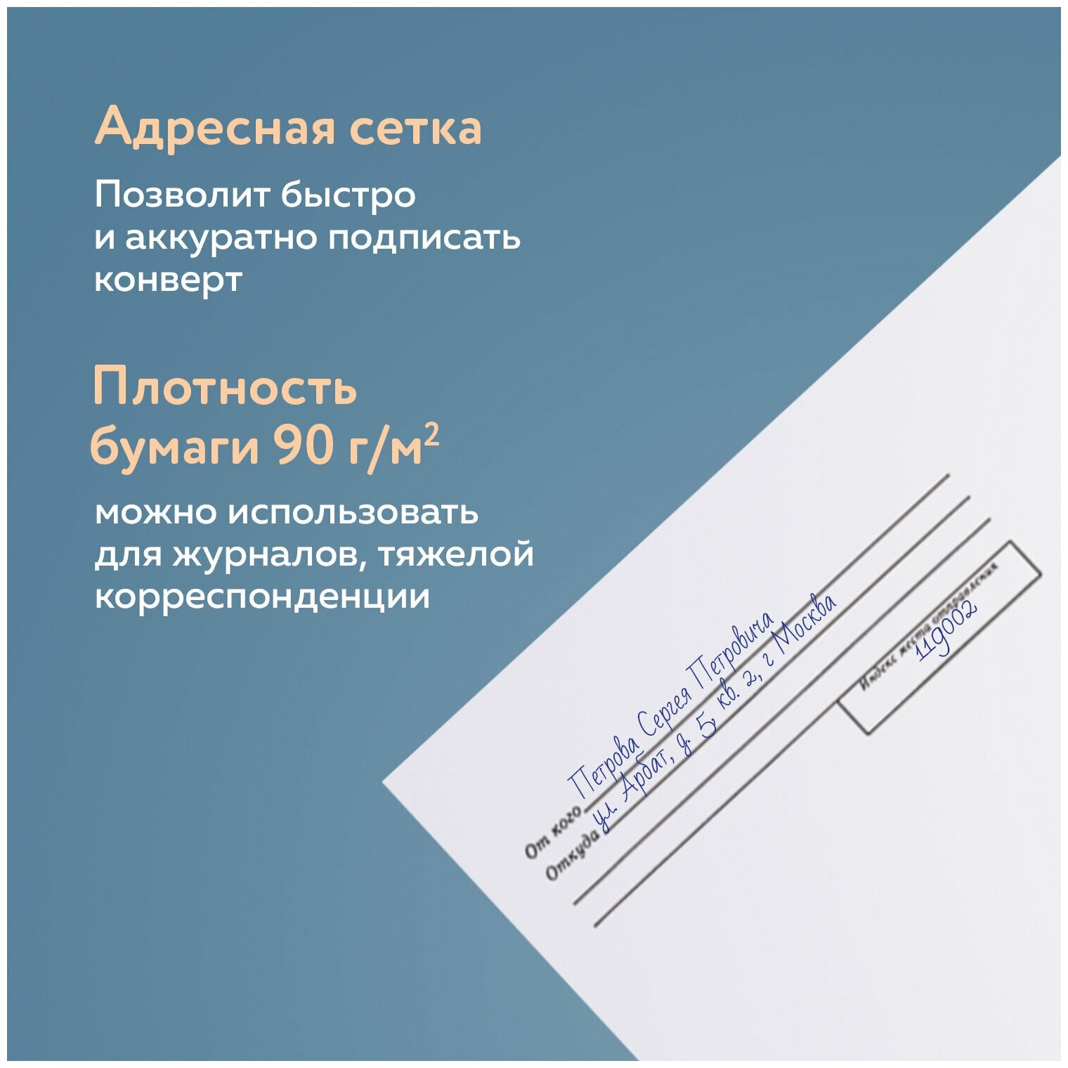 В конверт формата C4 можно вложить документ формата А4. На передней стороне конверта имеются адресные указатели: "Куда", "Кому", "От кого", "Откуда". Плотность бумаги 90 г/м2 позволяет размещать тяжелую корреспонденцию, а внутренняя запечатка поможет скрыть содержимое от посторонних глаз. Клеевой слой, нанесенный по краю клапана, обеспечивает надежное запечатывание конверта и сохранность личного письма или важного документа.