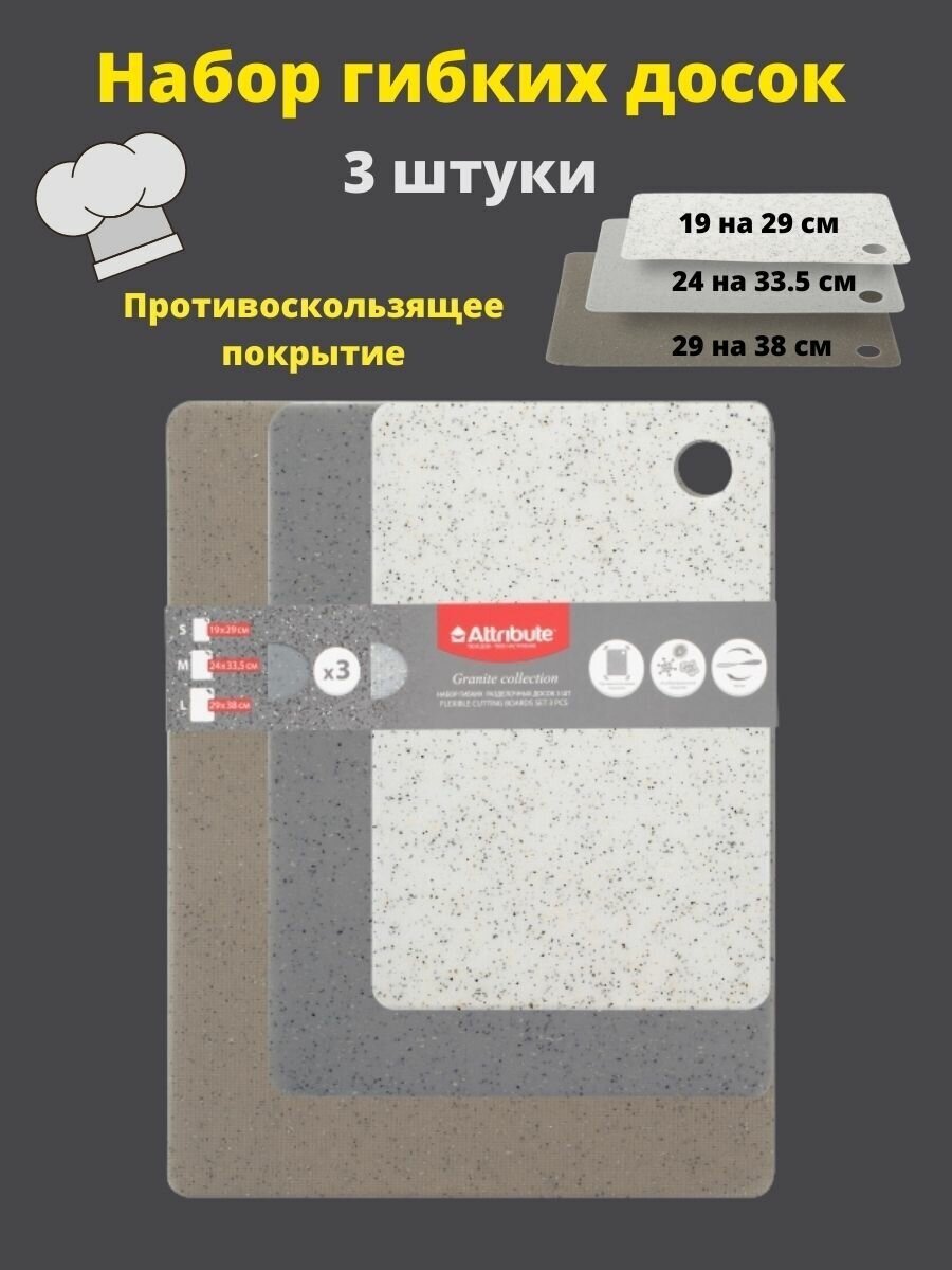 Набор гибких разделочных досок Attribute Granite Collection 3 шт.