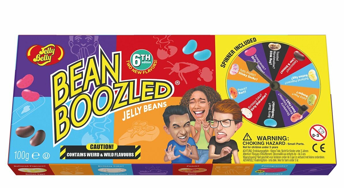 Жевательные бобы, которые смогут развеселить любую компанию. Вся суть развлечения заключается в поедании этого драже, но делать это нужно с осторожностью, т.к. помимо вкусного лакомства, вам также могут попасться "вкусняшки" со вкусом ушной серы, тухлого яйца или того хуже... Определить их по цвету не получится, даже не надейтесь. Крутите барабан и молитесь, чтобы вам выпало что–то съедобное... Пусть удача будет на вашей стороне!