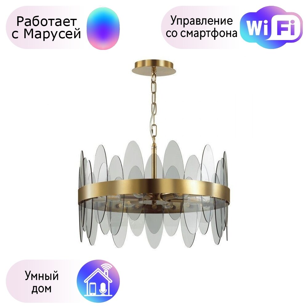Люстра подвесная Meredith 5268/6 - продукт известной компании Lumion (Италия). Имеет максимальную мощность 240 Вт, освещает площадь до 15 кв. м. Отлично подойдет для таких мест, как гостиная, кафе, спальня, кухня, кабинет. Впишется в интерьеры следующих стилей: модерн.