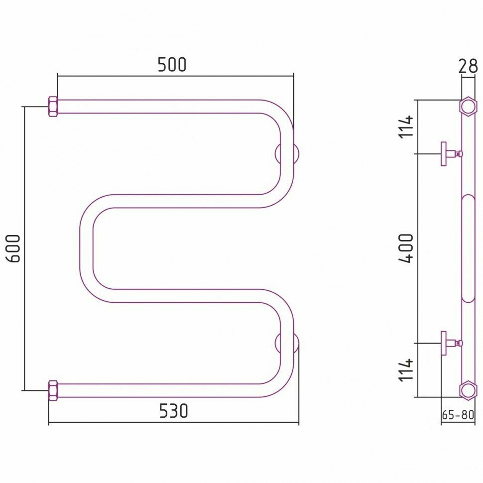 Полотенцесушитель водяной Сунержа ВПС Ш-обр. 600х500 Н. Г. 1" (Без покрытия) 00-0014-6050 Ш-образный