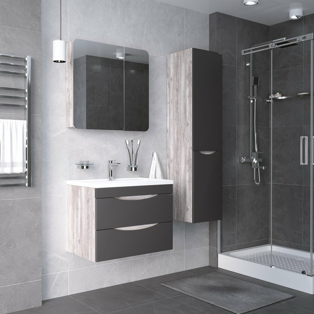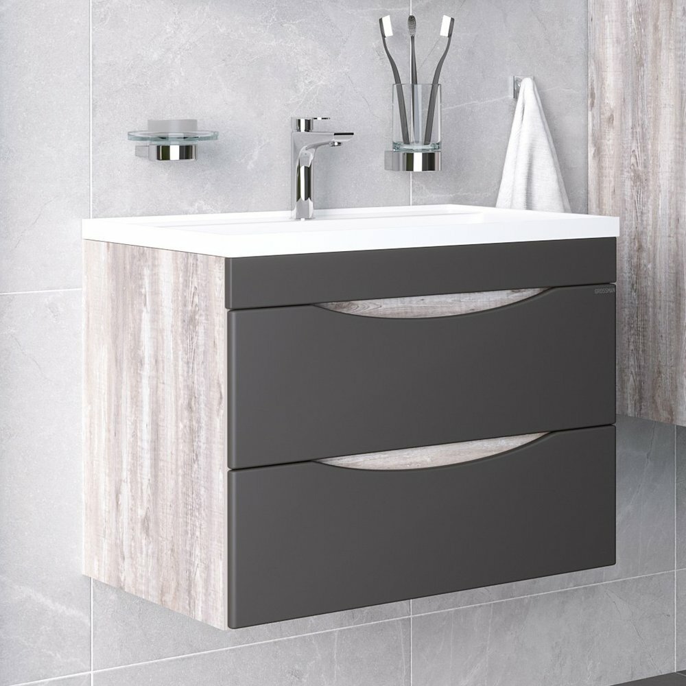 Тумба с раковиной Grossman "ТАЛИС-80 см" с 2-я ящ. бетон пайн серая (108013)