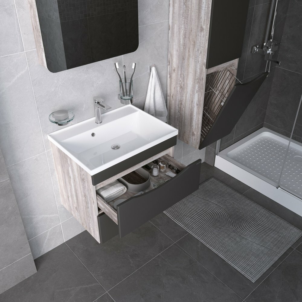 Сервис сравнения цен СкидкаГИД предлагает сравнить цены на товар «Тумба с раковиной Grossman "ТАЛИС-80 см" с 2-я ящ. бетон пайн серая (108013)»