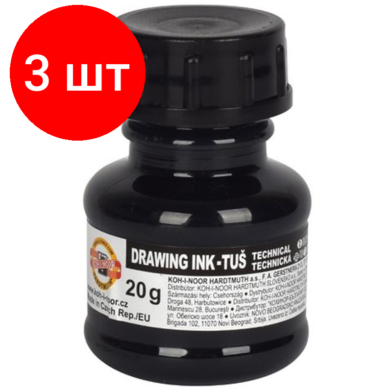 Тушь акриловая плакатная 20гр черная флакон KOH-I-NOOR