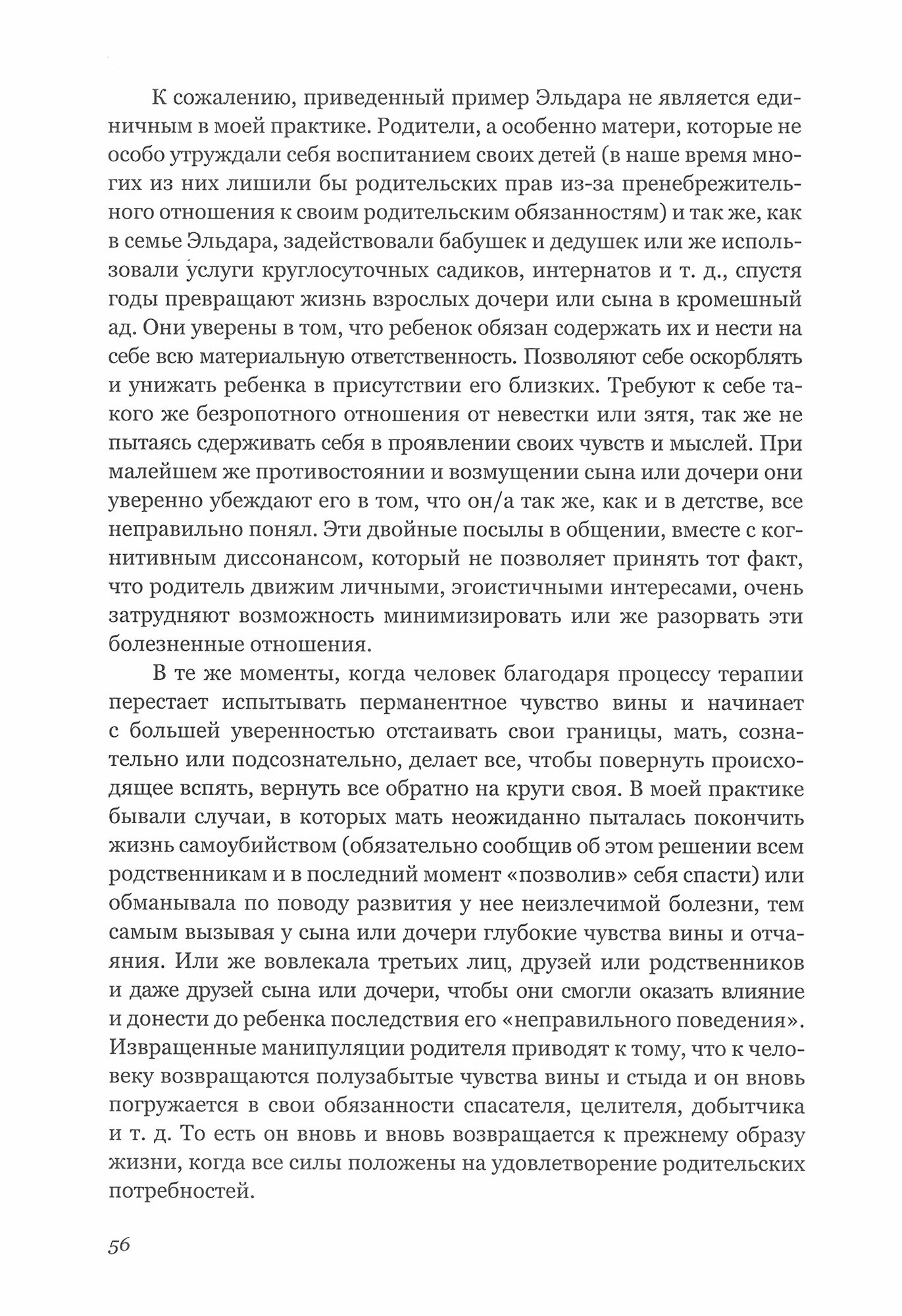 Видел хорошие рекомендации на книгу на странице автора, решил приобрести через Лабиринт. Мне было не легко читать некоторые главы, казалось, что всё написано про меня и про мой неудачный в итоге брак. При этом очень доступно всё описано, понравились объяснения автора почему люди изменяют. Жена моя явно относится к категории «живущая под покровом маски». Теперь понимаю почему. Со своими родителями она была не разлей вода: и поселились мы рядом с ними и работала она вместе со своей матерью. Жалко что не знал об этом раньше, может быть смогли бы что то изменить. Провести бы ее через эту ДПДГ терапию, описанную в книге, интересно что бы она сказала – любила ли она меня? Книгу рекомендую, считаю что эта лучшая книга которую я прочёл за последние годы в области психологии. Многое понял о себе, про себя, почему выбрал свою жену и почему до сих пор не могу её отпустить. И понял, что сам жил долгие годы под каким то непонятным покровом, как в тумане, многое не понимал и не осознавал. В семье, со стороны родителей и сестры, всегда было какое-то странное и непонятное ко мне отношение. Сколько себя помню, я помогал своей семье всем чем мог – временем, деньгами. При этом чувствовал, что не любят они меня, что им нужны только мои деньги. Неожиданно понял, что жену выбрал такую же. Думаю обратиться к психологу. Вспомнил, что жена раньше просила найти семейного психолога, но тогда я был к этому ещё не готов. Сейчас думаю пришло время.