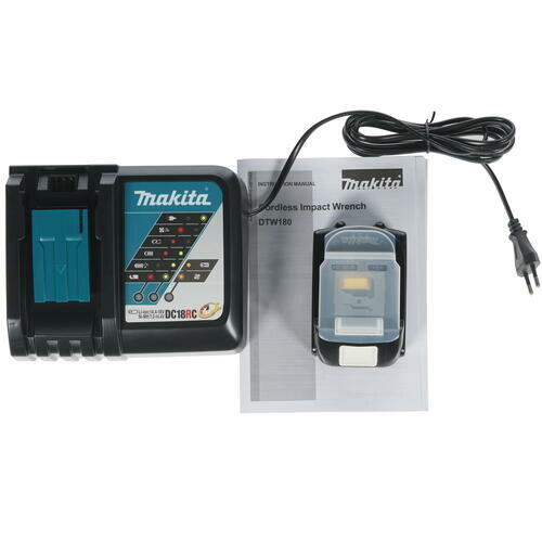 MAKITA DTW180RFE Гайковерт аккумуляторный ударный (18В2x3АчLi-ionб\щет0-3600у\м180Нмквадрат 3\8"1.2кгчемпод DTW180RFE , 18В, 2x3Ач, Li-ion, 3600у\м, 180Нм, квадрат 3\8"