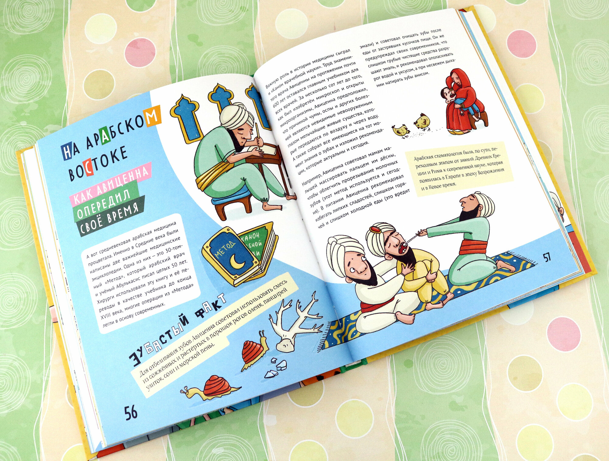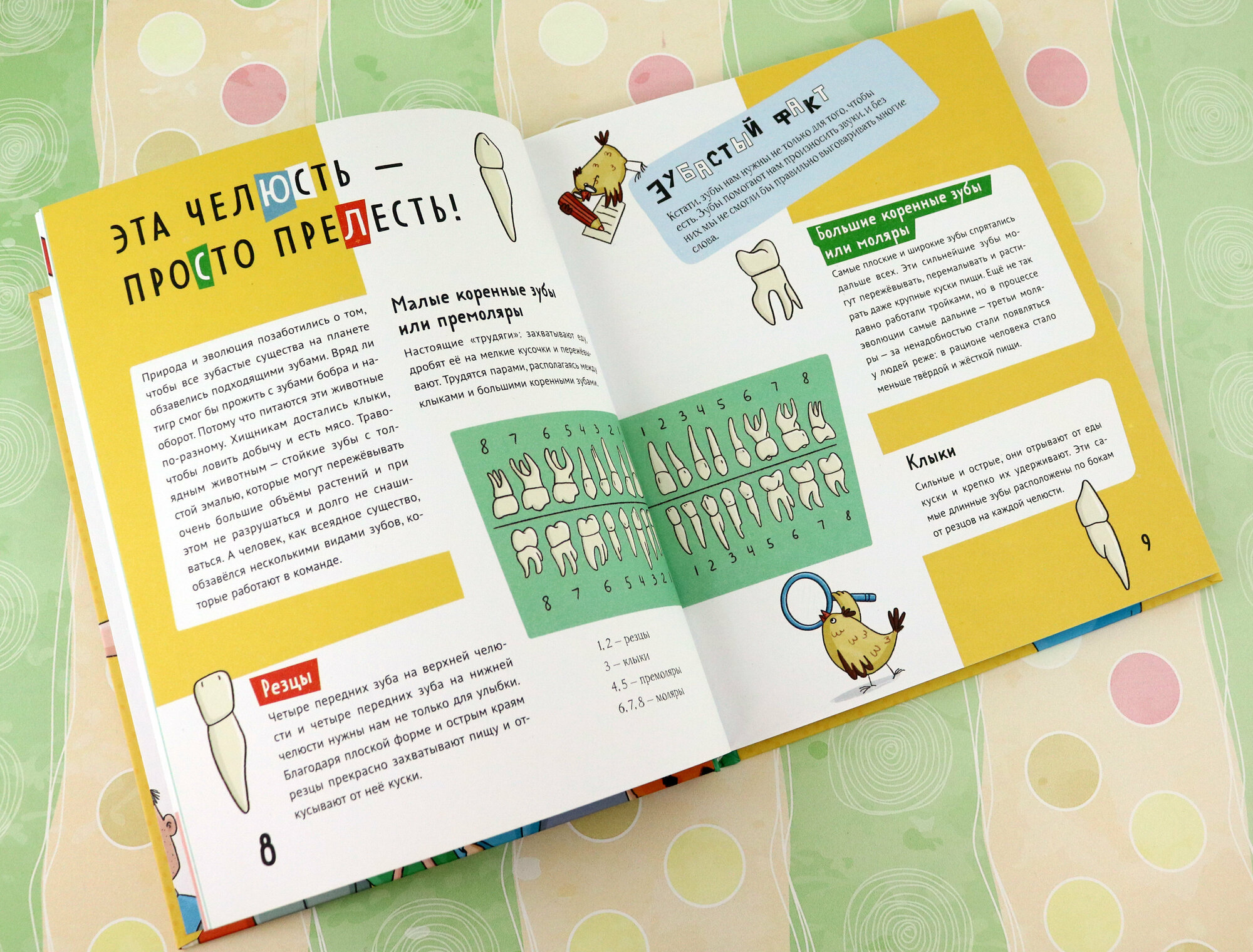 Отличная познавательная книга для детей 8-12 лет. Она не только рассказывает о том, какие зубы были у наших предков, как их лечат сейчас и как лечили раньше, но еще и прививает культуру ухода за зубами. В энциклопедии на языке фактов объяснено все, что может произойти с зубами: с какими болезнями они могут столкнуться, что делать, чтобы их избежать. Кроме того, в книге есть забавные истории про моду на черные зубы или камни, которые вставляли для украшения. Это нравится детям и хорошо запоминается. И отдельно хочу отметить стиль иллюстраций – немного мультяшный, запоминающийся. Покупкой довольна и с удовольствием почитала книгу сама.
