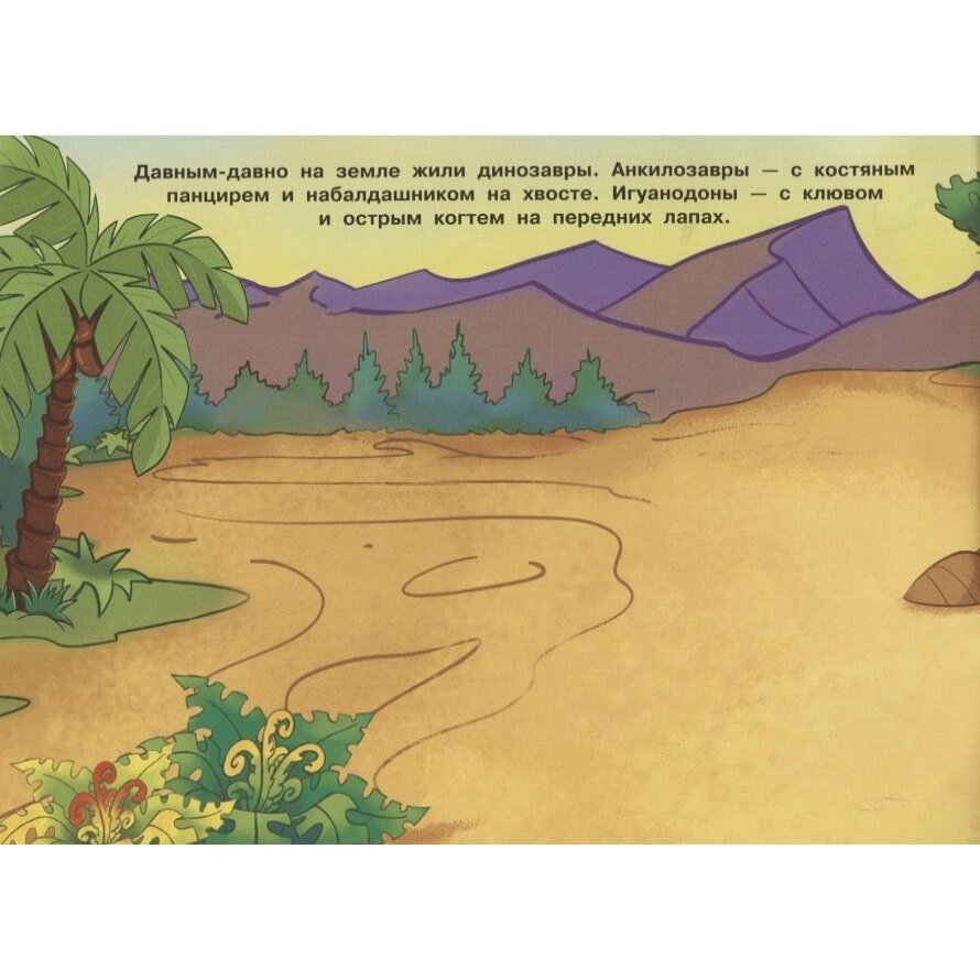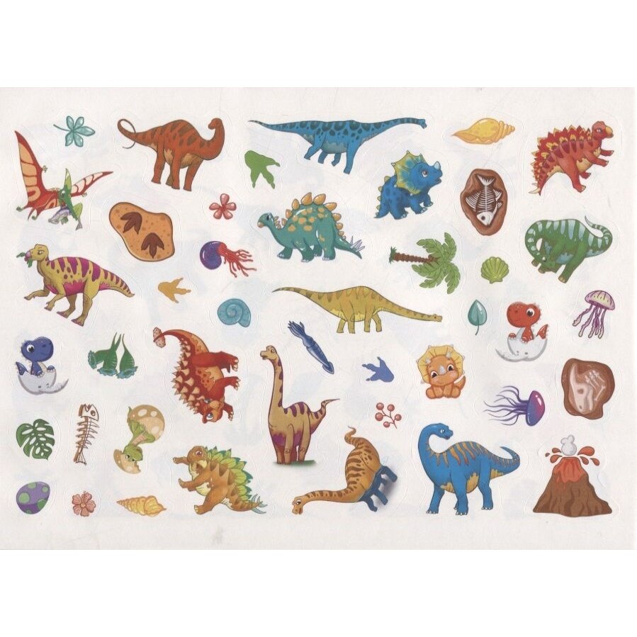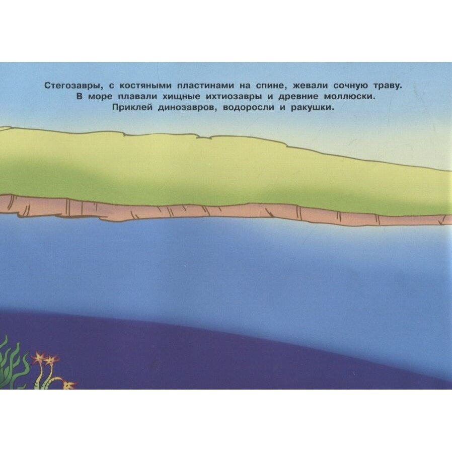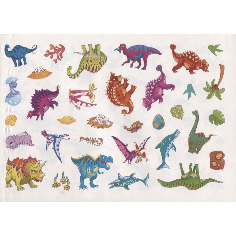 Давным-давно, когда на земле не было ни людей, ни животных, жили на нашей планете огромные существа. Бронтозавры, птеродактили, ихтиозавры, тираннозавры, анкилозавры - всех этих и многих других динозавров вы найдёте в нашей книжке. Наклеек так много, что их можно клеить не только на странички, но и украсить ими всё, что захочется.