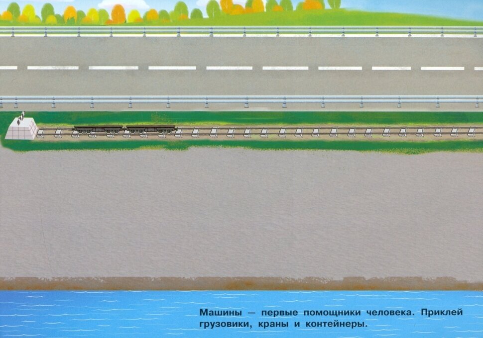 Машины - первые помощники человека. Грузовики помогают доставлять тяжёлые грузы, тракторы работают на стройке и на полях, автомобили и автобусы перевозят людей. Все эти виды транспорта вы найдёте в нашей книжке. Наклеек так много, что их можно клеить не только на странички книжки, но и украсить ими всё, что захочется.