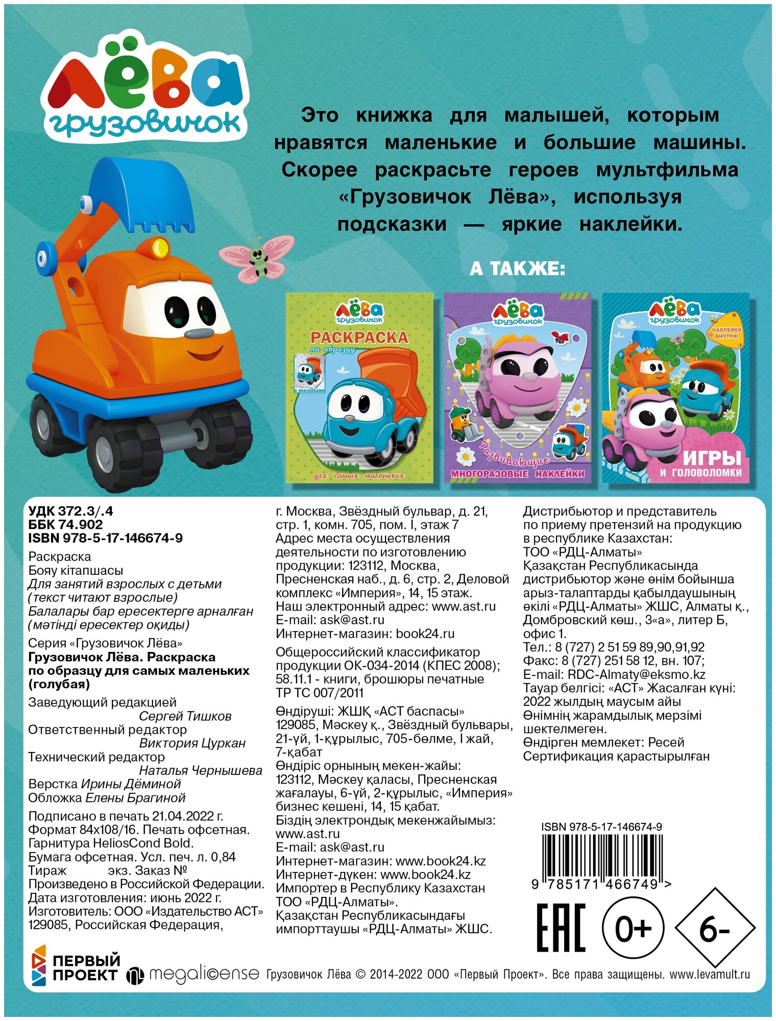 Грузовичок Лева Раскраска по образцу для самых маленьких (.); ИЗДАТЕЛЬСТВО "АСТ", 2022