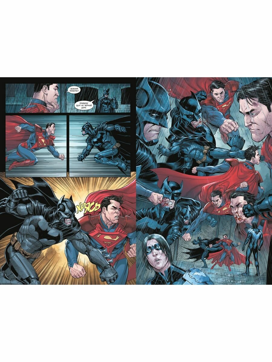 Завершение противостояния двух мастодонтов вселенной DC. Ну, как завершение. Все 5 томов, все 5 лет данной арки являются предысторией к одноименной игре - в любом случае - результат разрешения конфликта стоит искать в компьютерной игре. Само же повествование ничем примечательным от предыдущих томов не отличается - экшен, взрывы, но убийств мало. Радует объем данного издания - 21 выпуск, самый объемный том из всех 5 выпусков. Читается не напряжно, иллюстрации красочные, диалоги и монологи не утомляют.